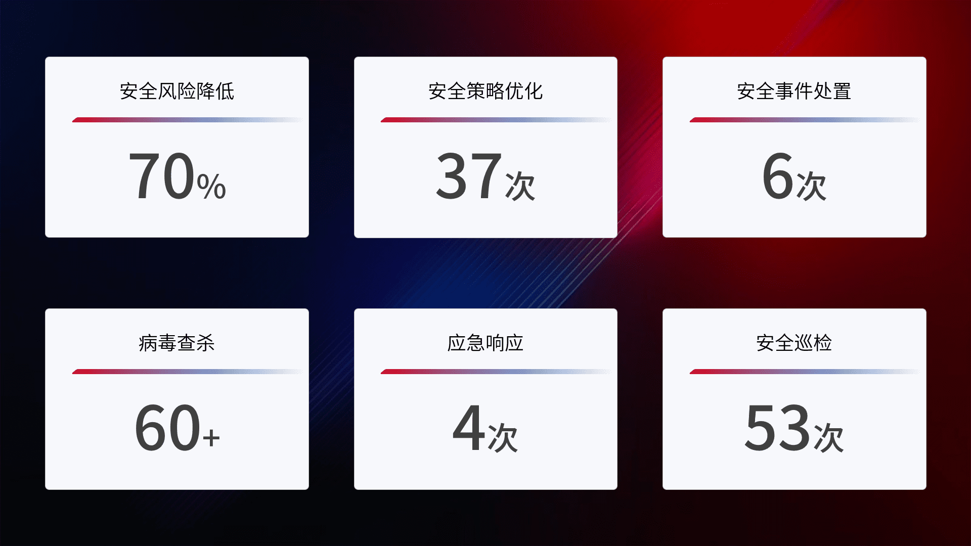 综合报告与文档服务: 定期提供安全事件处置报告、、周/季度总结报告和年度总结报告;详尽的文档服务可帮助客户了解网络安全状况,,支持决策制定和流程优化。。。。
