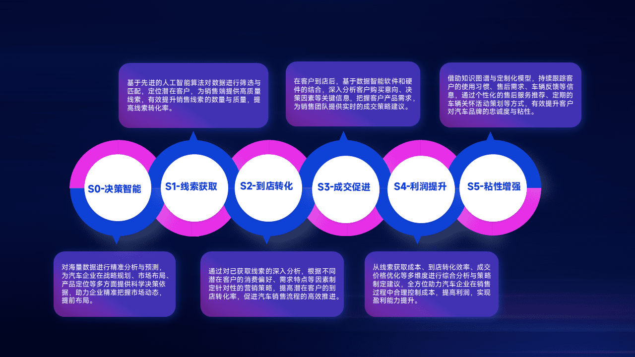 通过拓宽潜在客户来源、、优化线索分配并提高到店转化率,,,,以增强销售效率。。。同时,,,,利用线索数据不断优化分析模型,,有效提升转化率,,,扩大营销影响力。。。。